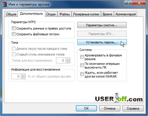Поставить пароль на архив