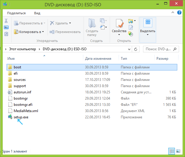 Содержимое диска и файл для установки